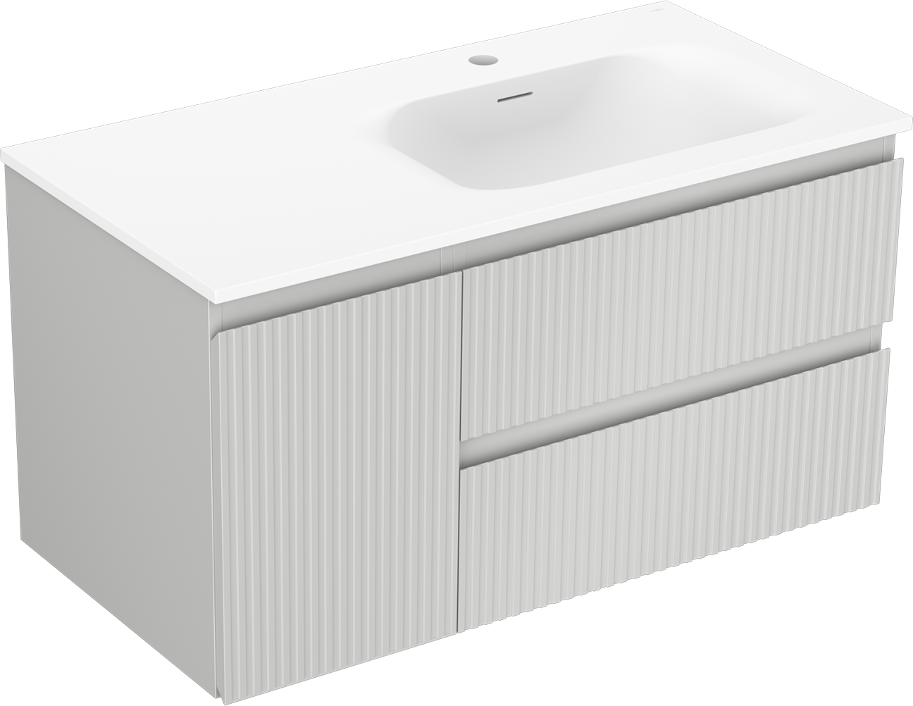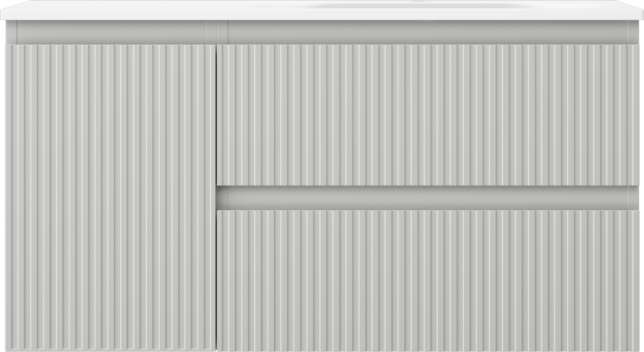 Mexen Rivel badrumsskåp 90 cm med tvättställ Vela höger, 2S, 1D, räfflad, grå matt/vit matt - 91A23-09047-3-BBFFF62-W23P01