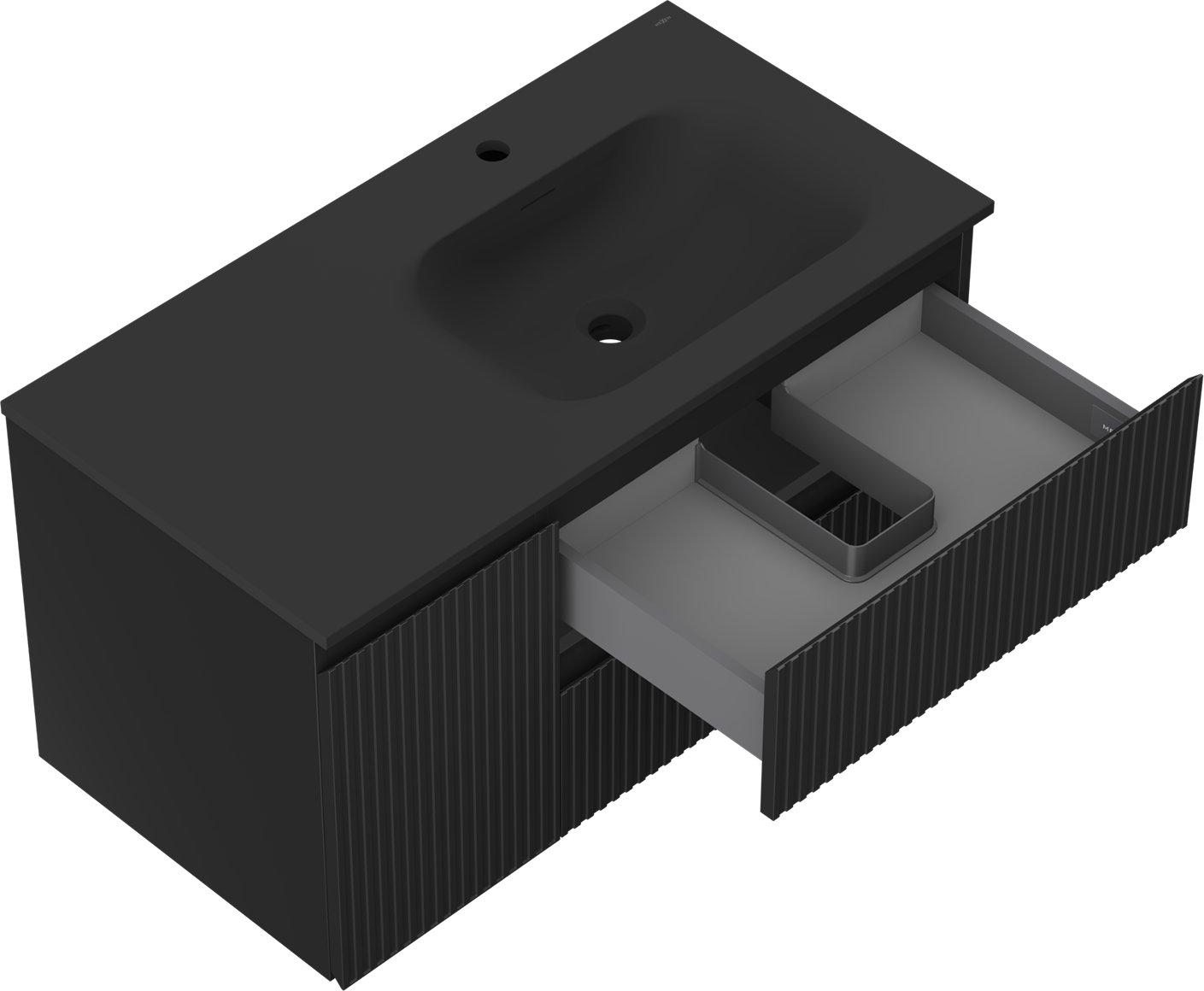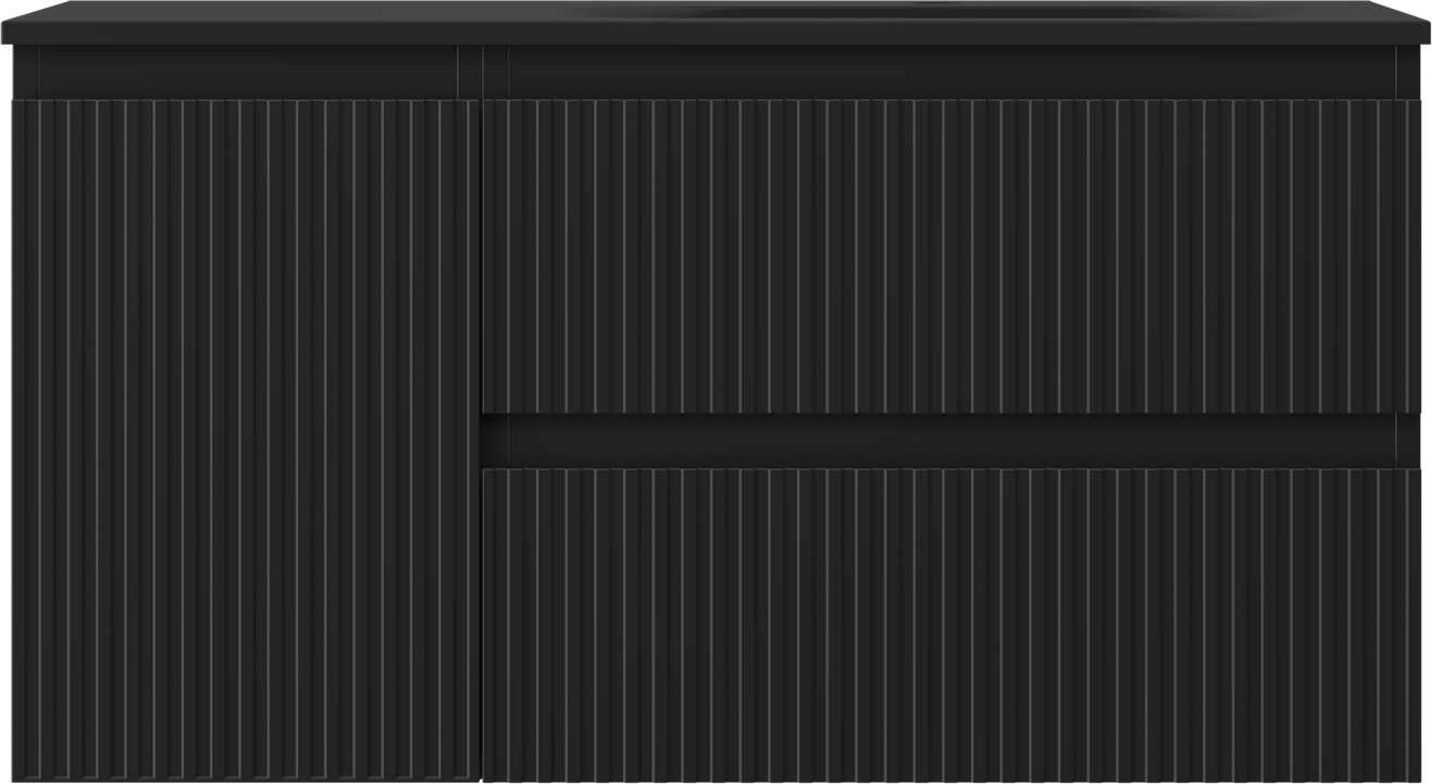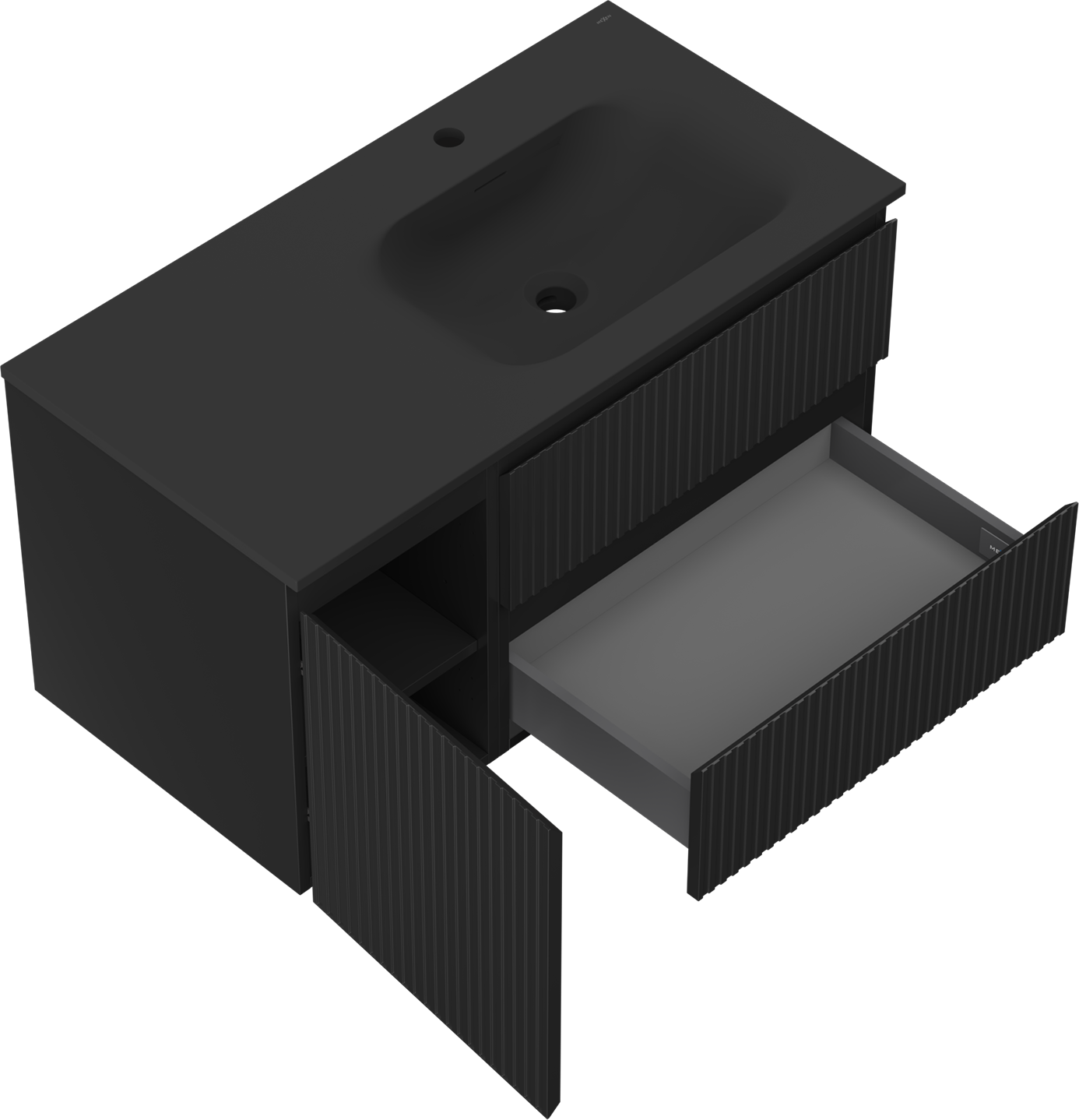 Mexen Rivel badrumsskåp 90 cm med tvättställ Vela höger, 2S, 1D, räfflad, svart matt - 91A23-09047-3-BBFFF71-W23P71