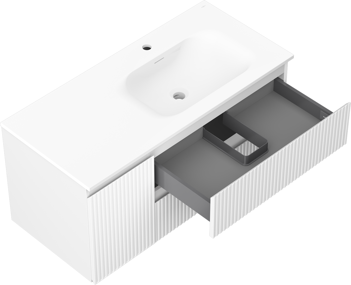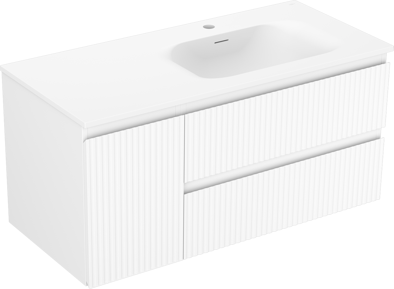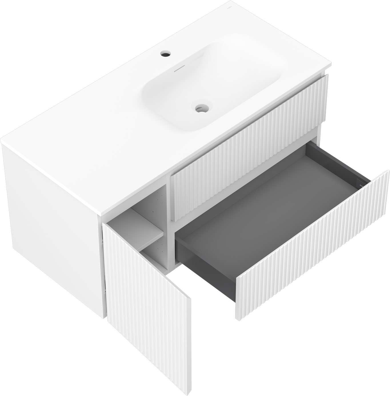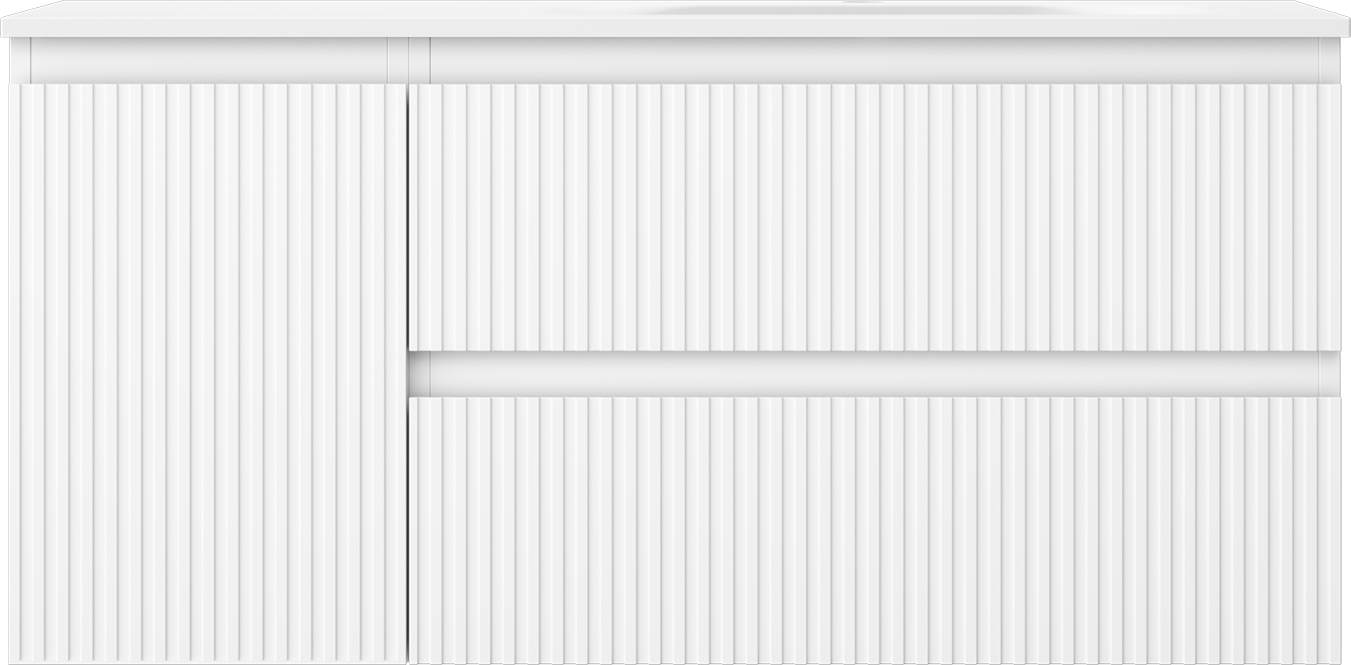 Mexen Rivel badrumsskåp 100 cm med handfat Vela höger, 2S, 1D, räfflad, vit matt - 91A23-10047-3-BBFFF01-W23P01