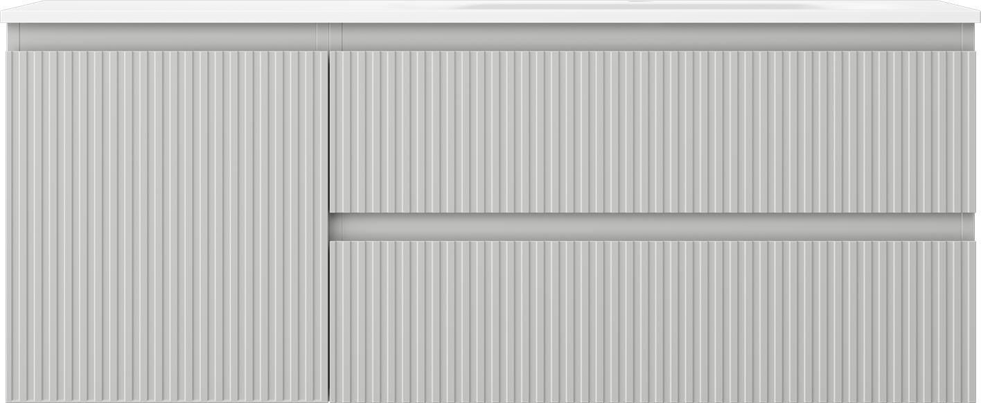Mexen Rivel badrumsskåp 120 cm med handfat Vela höger, 2S, 1D, räfflad, grå/vit matt - 91A23-12047-3-BBFFF62-W23P01