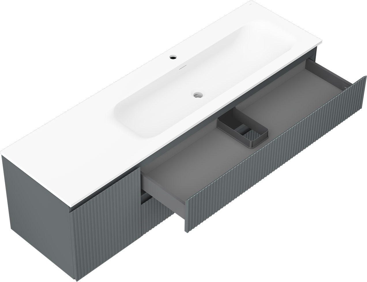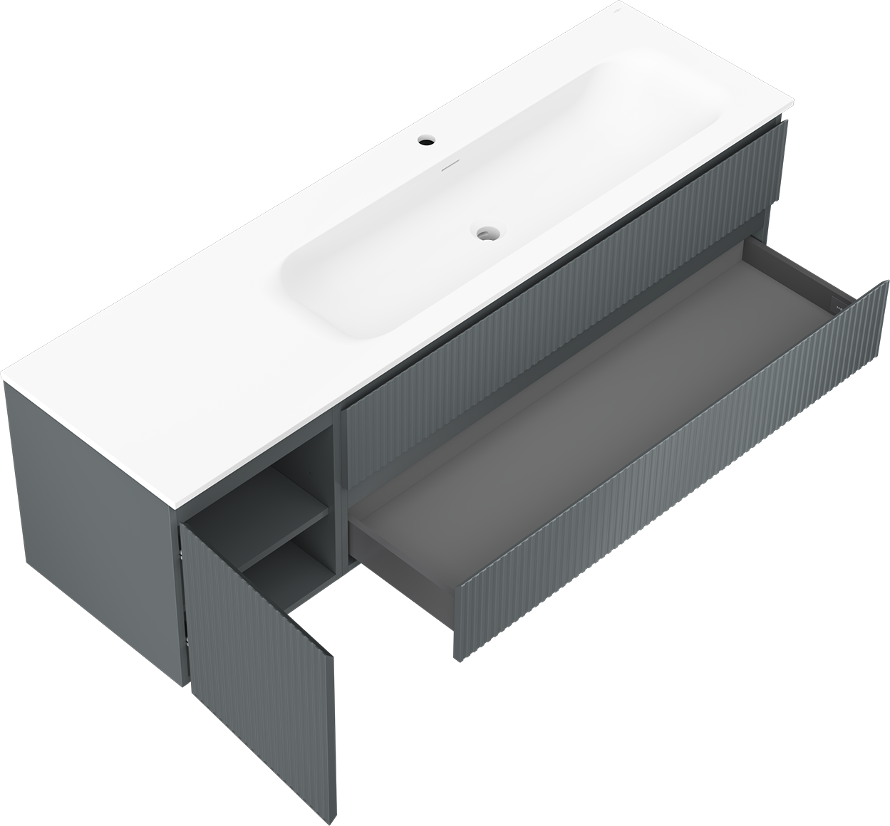 Mexen Rivel badrumsskåp 160 cm med handfat Vela höger, 2S, 1D, räfflad, grafit/vit matt - 91A23-16047-3-BBFFF66-W23P01