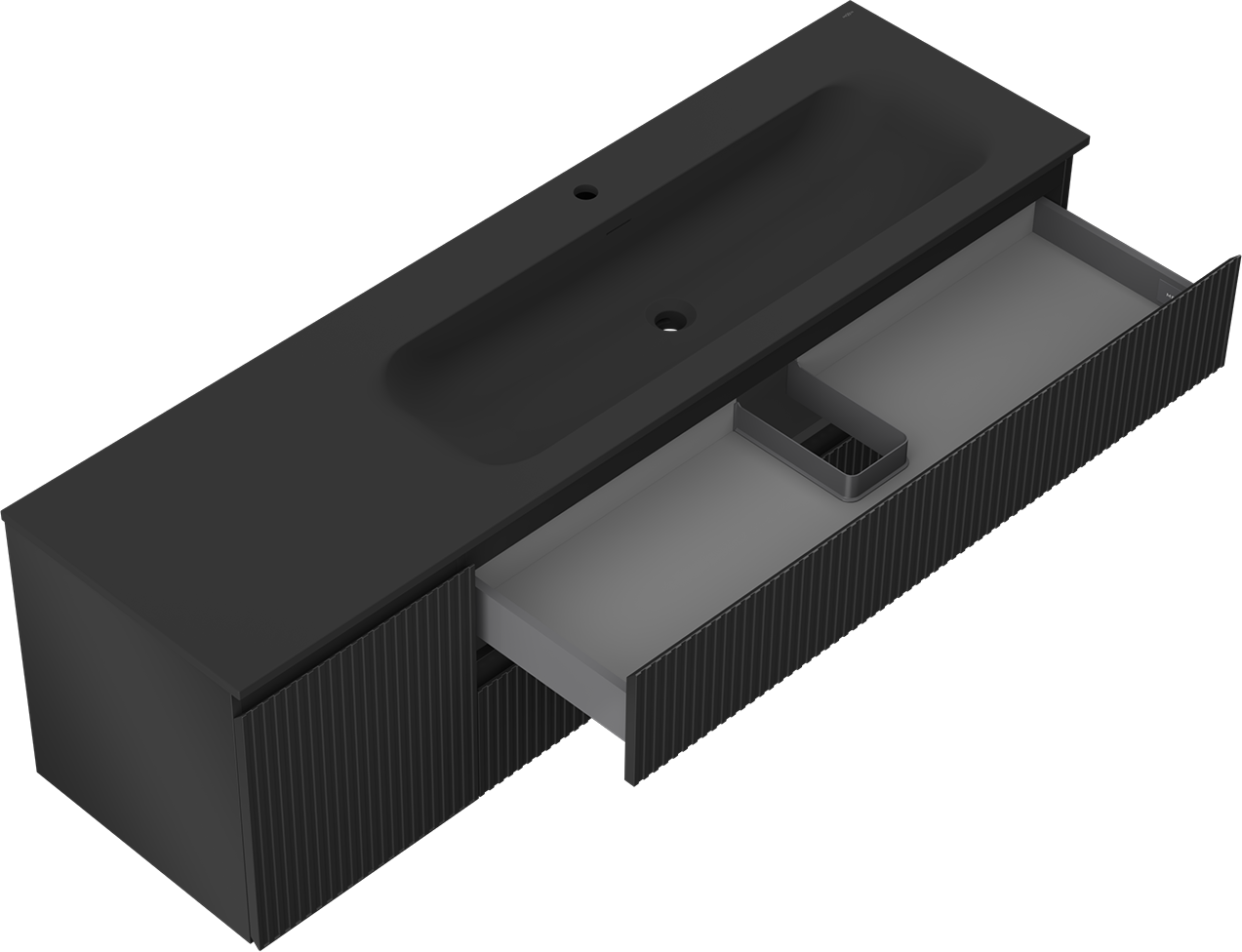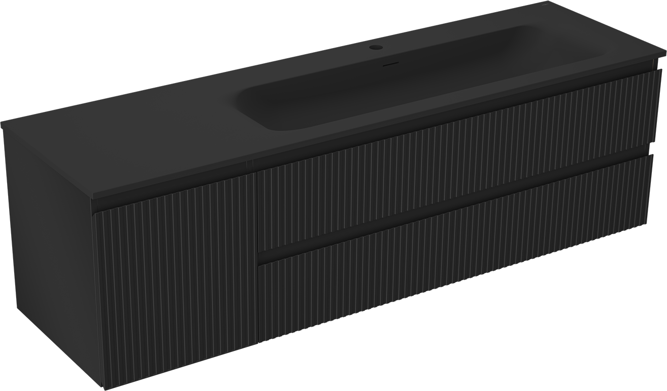 Mexen Rivel badrumsskåp 160 cm med handfat Vela höger, 2S, 1D, räfflad, svart matt - 91A23-16047-3-BBFFF71-W23P71