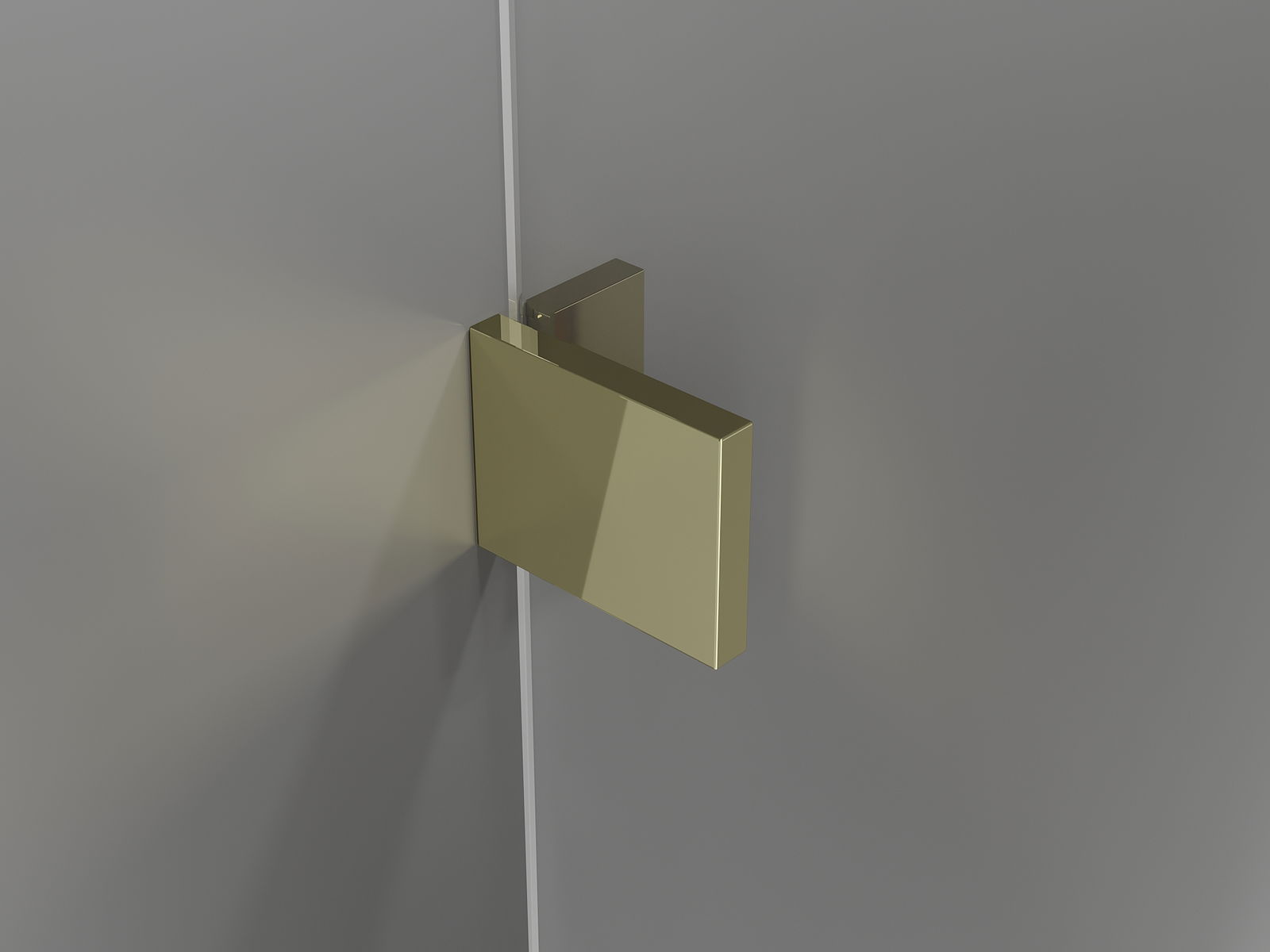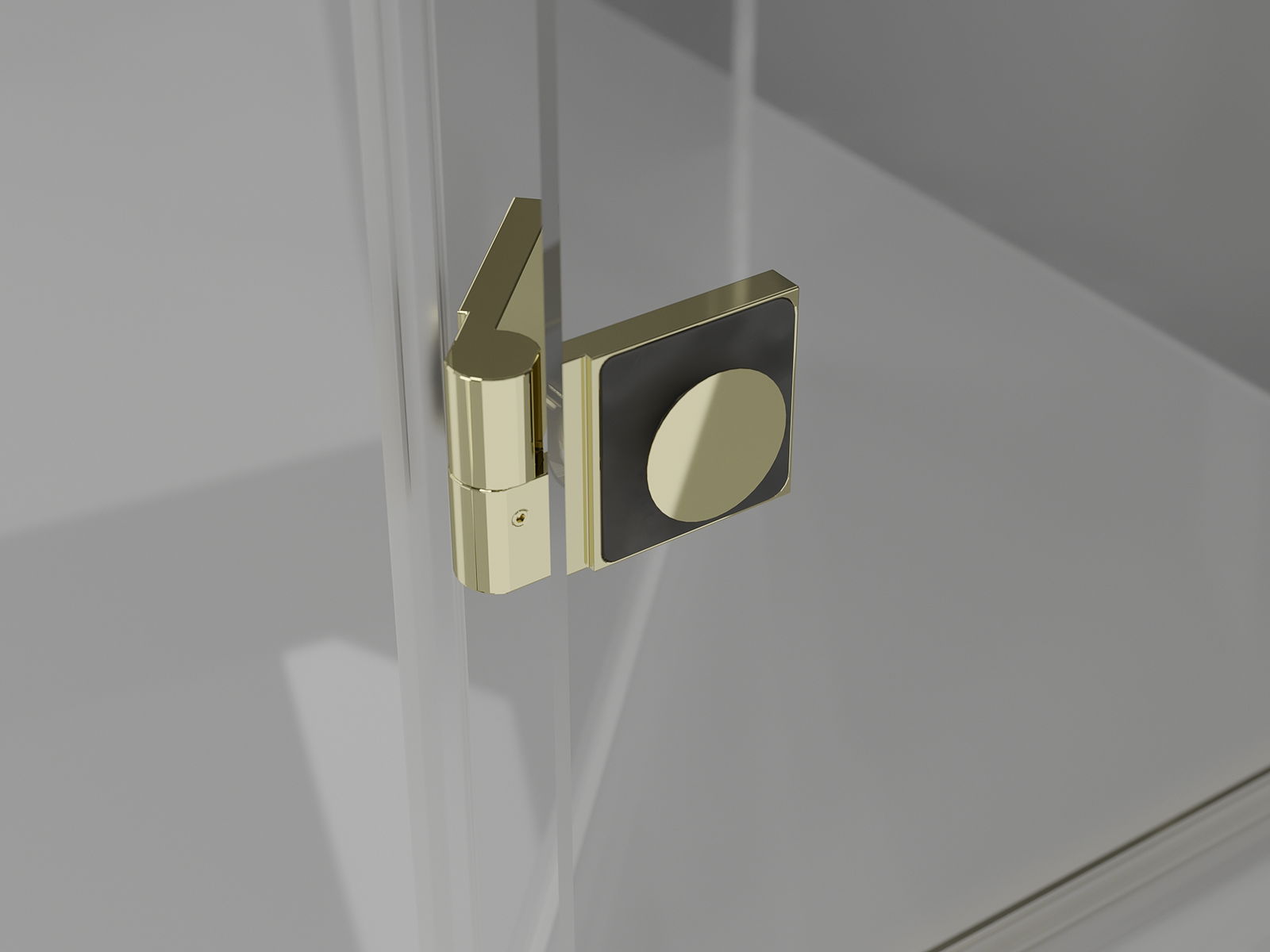 Mässingshandtag och gångjärn i linje med glasytan