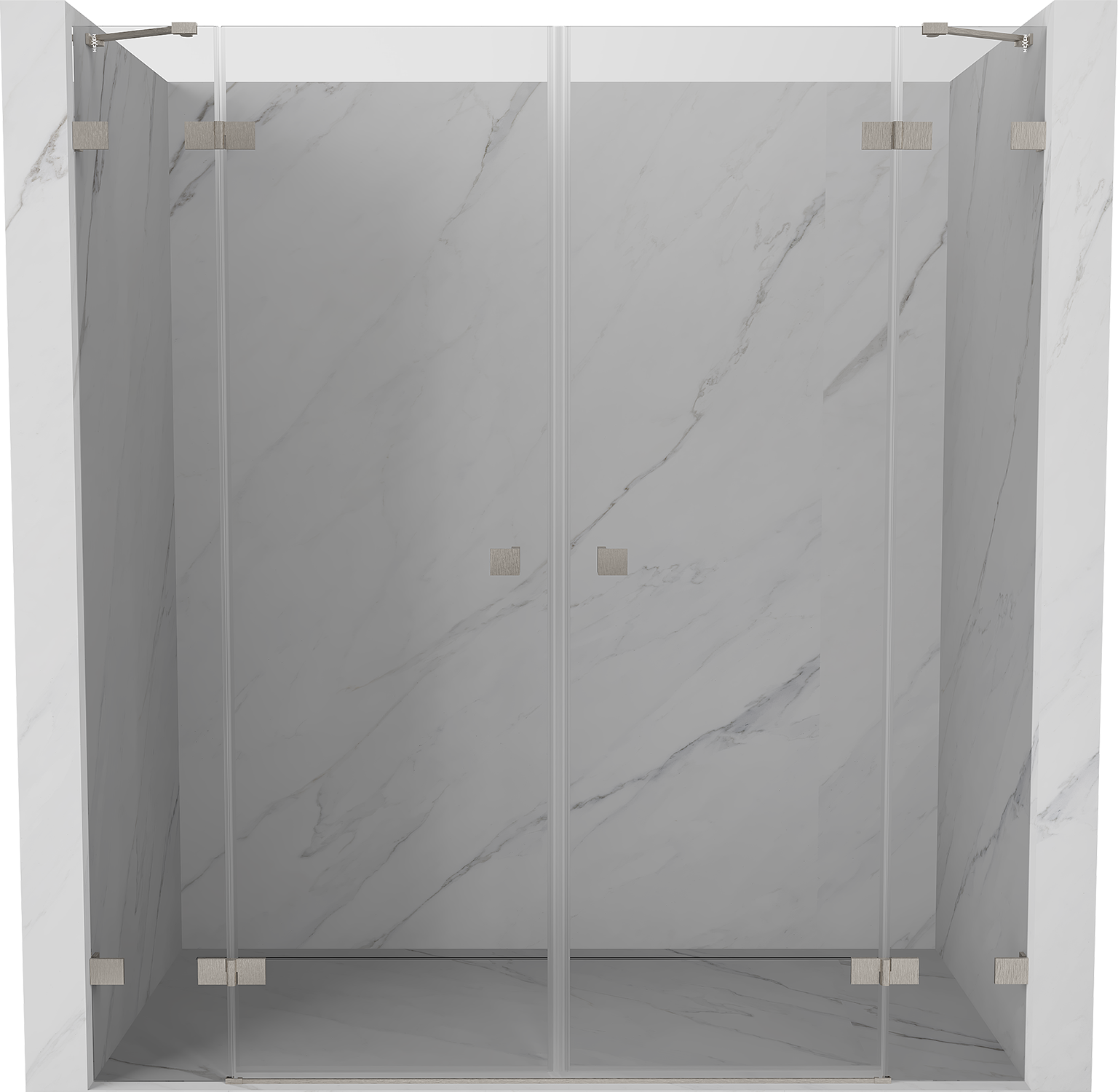 Mexen Lunar Duo duschdörrar, svängbara 200 cm, transparent, borstad nickel - 834D-200-000-97-00