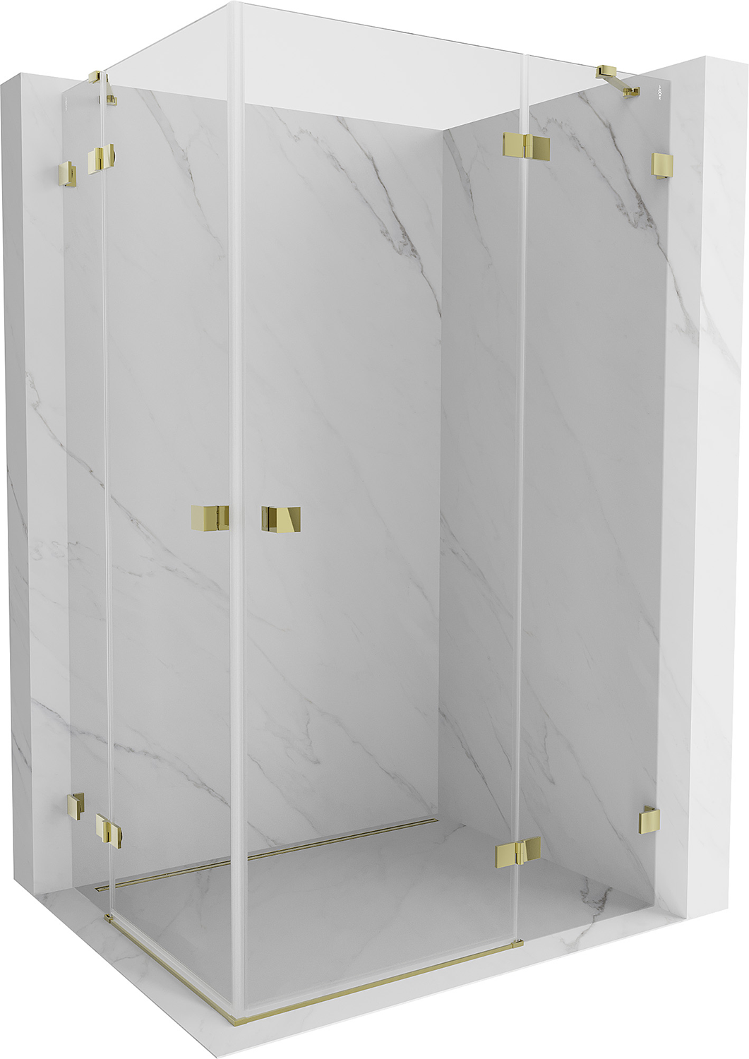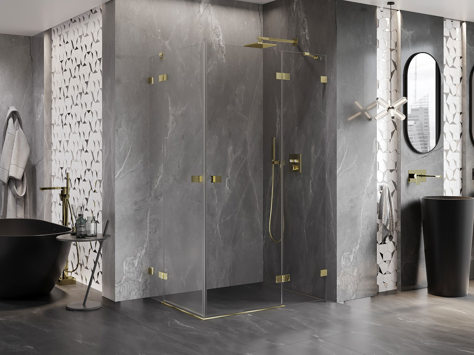 Mexen Lunar Duo duschkabin med svängbar högerdörr 90 x 80 cm, transparent, guld - 834-090P-080L-50-00