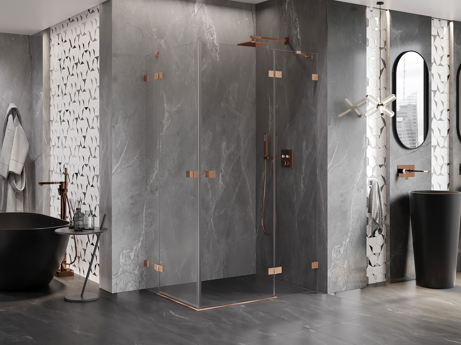 Mexen Lunar Duo duschkabin med svängdörr höger 120 x 90 cm, transparent, borstad koppar - 834-120P-090L-65-00