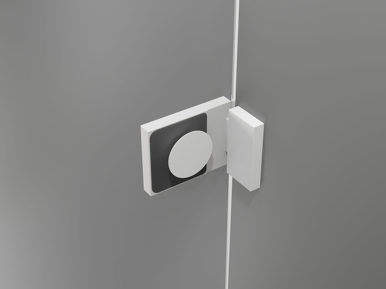 Mässinghandtag och gångjärn infällt i glasytan