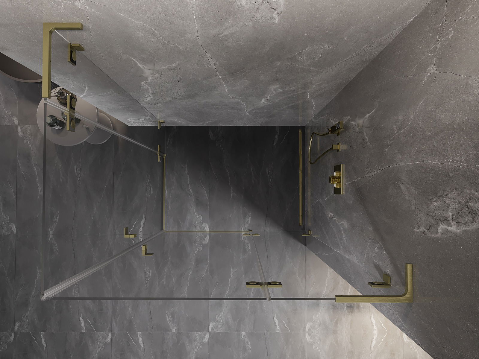 Mexen Lunar L Duo duschhölje med dubbeldörrar höger 90 x 80 cm, transparent, borstad guld - 834L-090P-080L-55-00