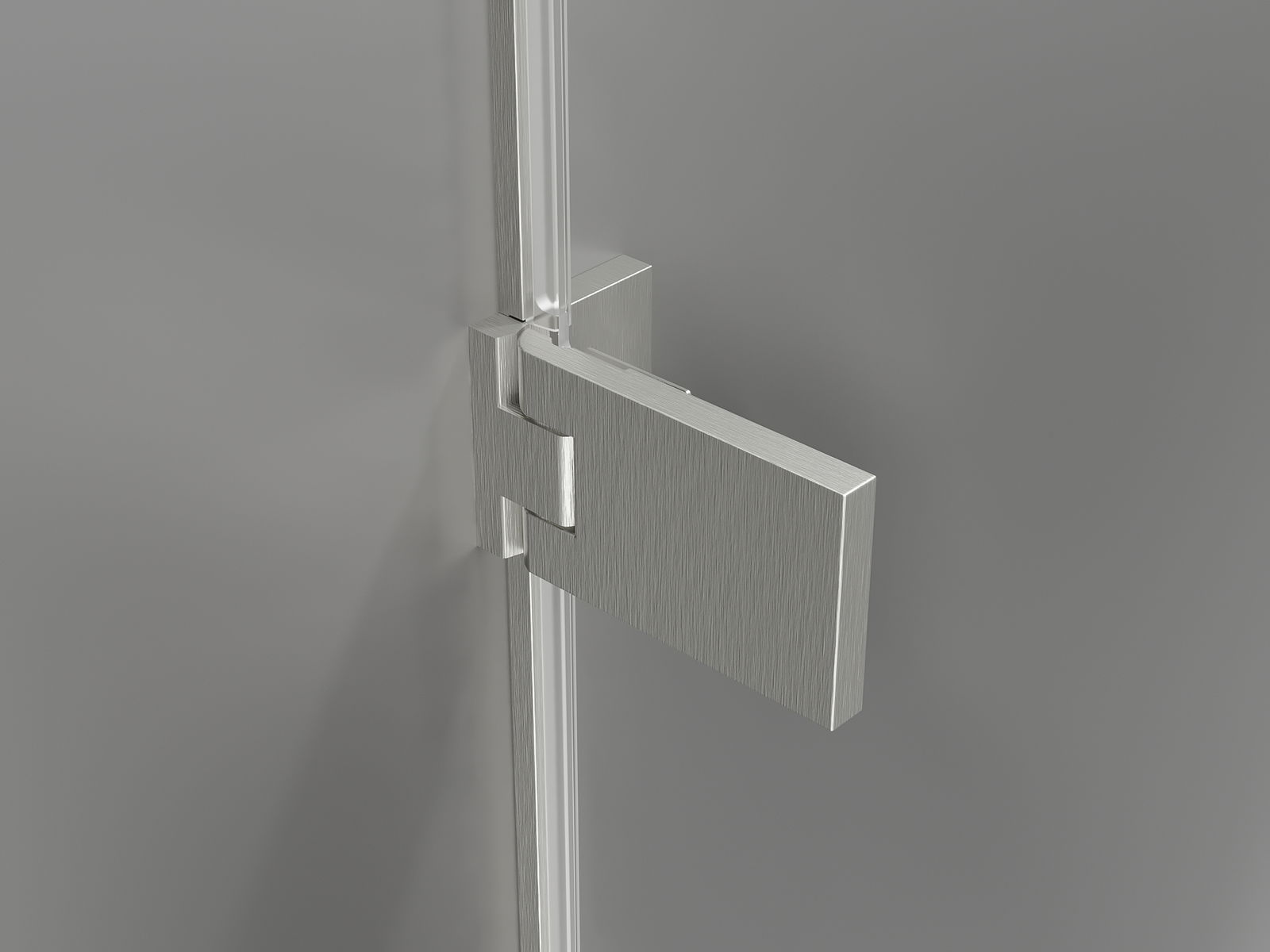 Mässingsklämmor och gångjärn i linje med glaspanelen