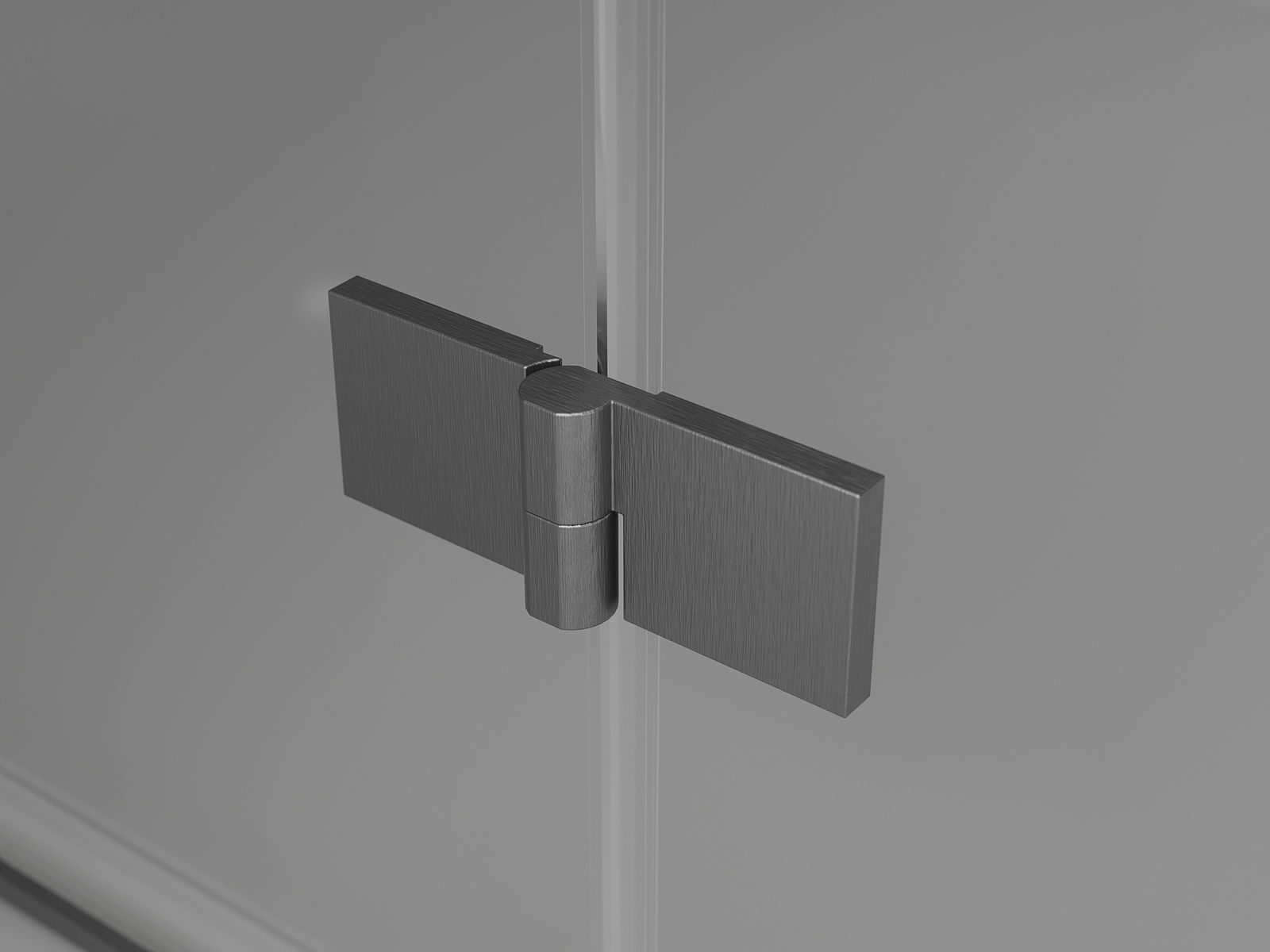 Mässinghandtag och gångjärn i linje med glasytan