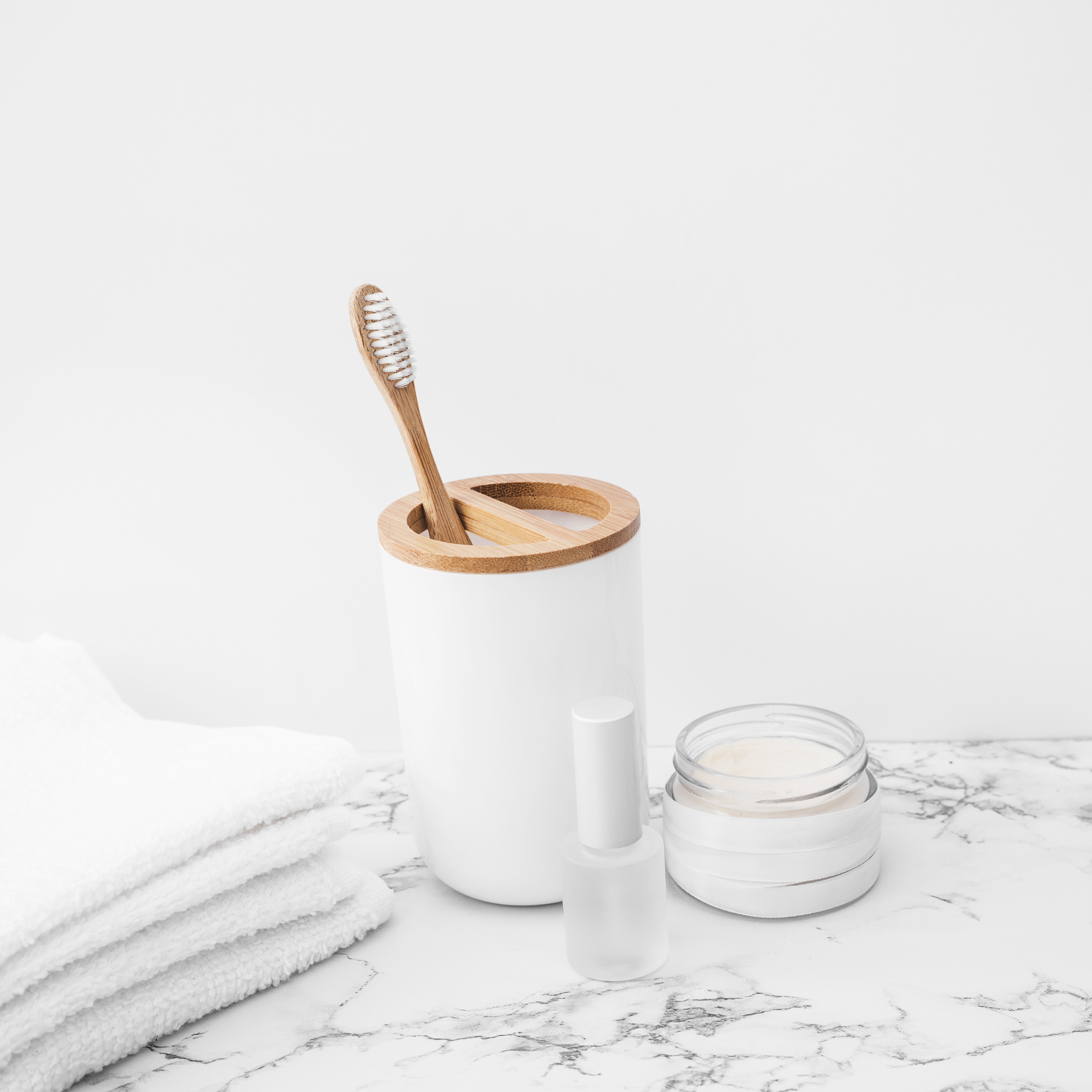 - en mugg för tandborstar,