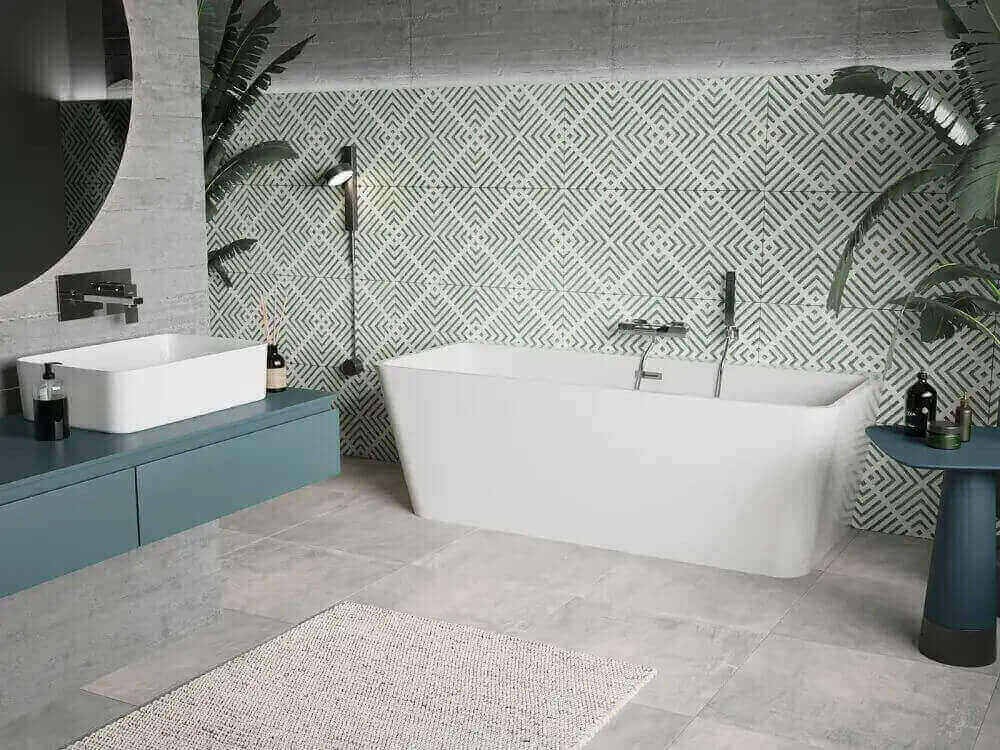 Att inreda ett badrum i boho-stil öppnar upp för många möjligheter till att uttrycka sin personliga karaktär. Sådan inredning hämtar inspiration från olika kulturer, inklusive påverkan från parisiskt bohem, vilket ger frihet att kombinera mönster och texturer. Därför är det värt att lägga till patchworkelement i badrummet för att ge det en konstnärlig touch och göra det unikt. Mönstrade plattor fungerar bra på väggar och golv, och deras unika design skapar en originell komposition som särskiljer utrymmet. Denna inredning lägger till färger och unikhet till interiören, vilket helt och fullt förmedlar boho-stilen.
