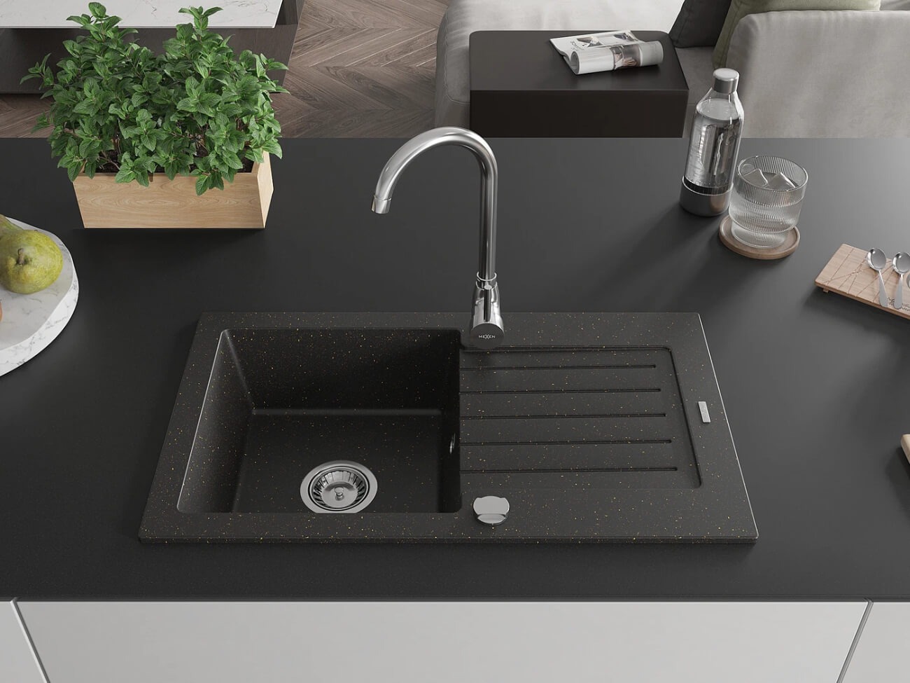 - Platsbesparande vattenlås – en innovativ lösning som möjliggör bättre utnyttjande av ytan under diskbänken.