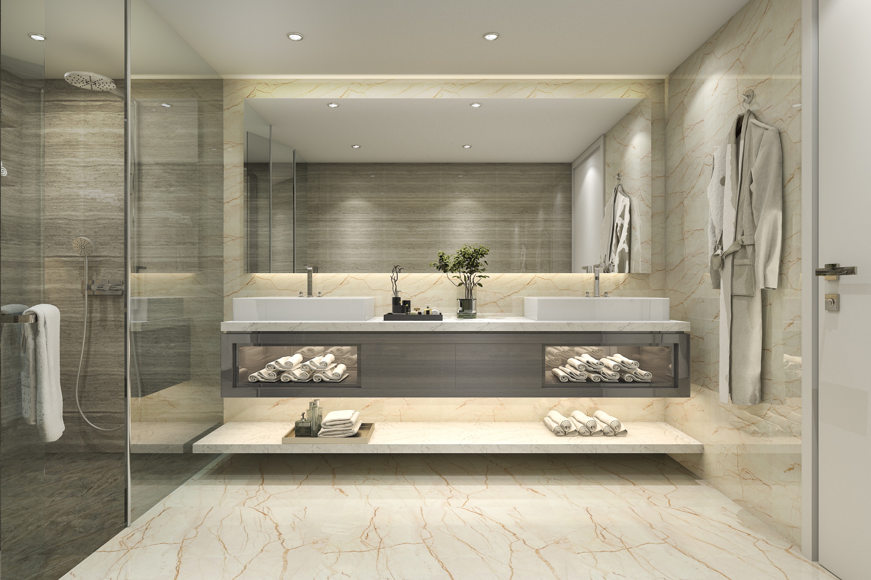 En ytterligare fördel med lokal belysning är dess användning i arbetsområden, såsom där kemikalier, badrumstillbehör och handdukar förvaras.