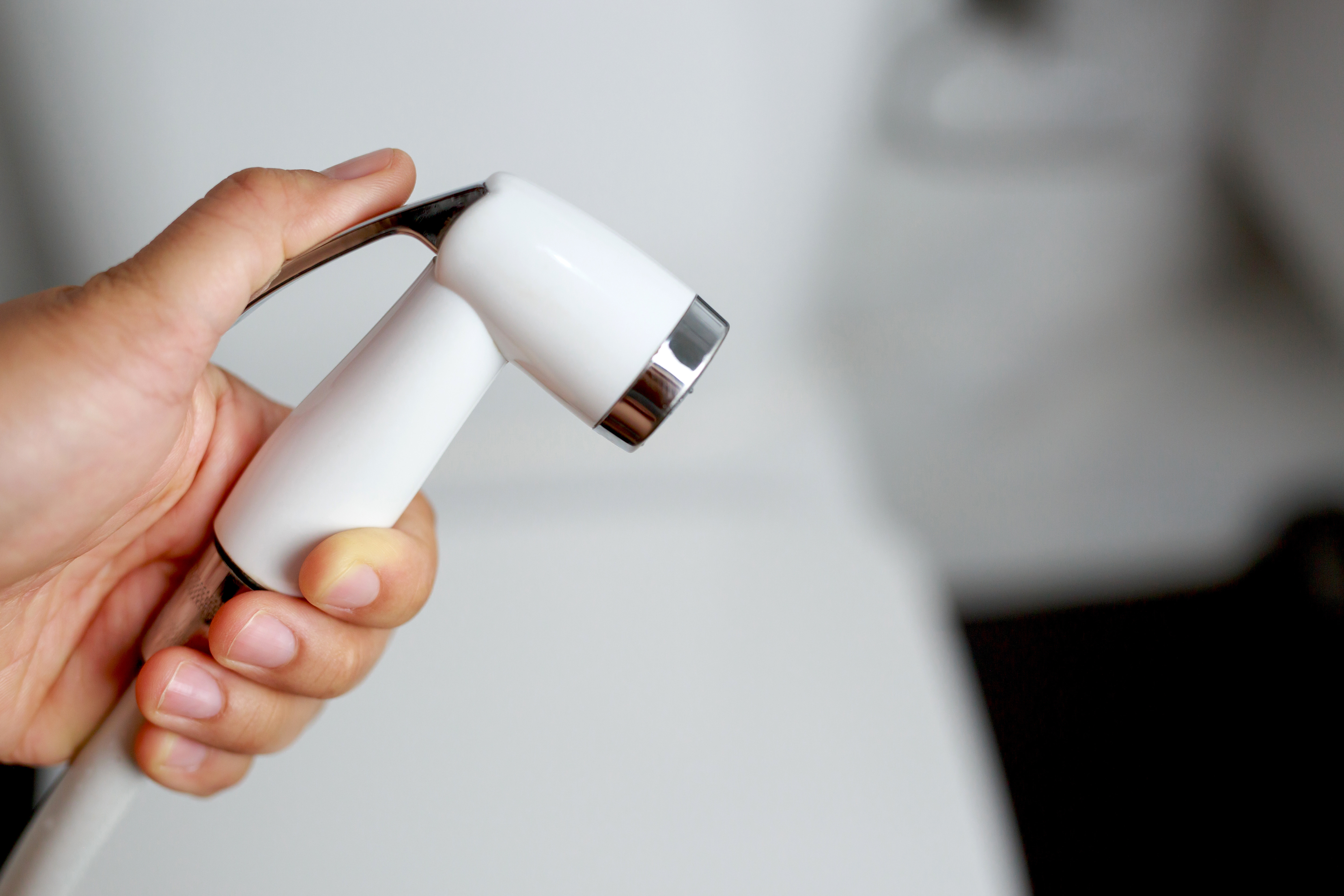 Bidetdusch i ett litet badrum