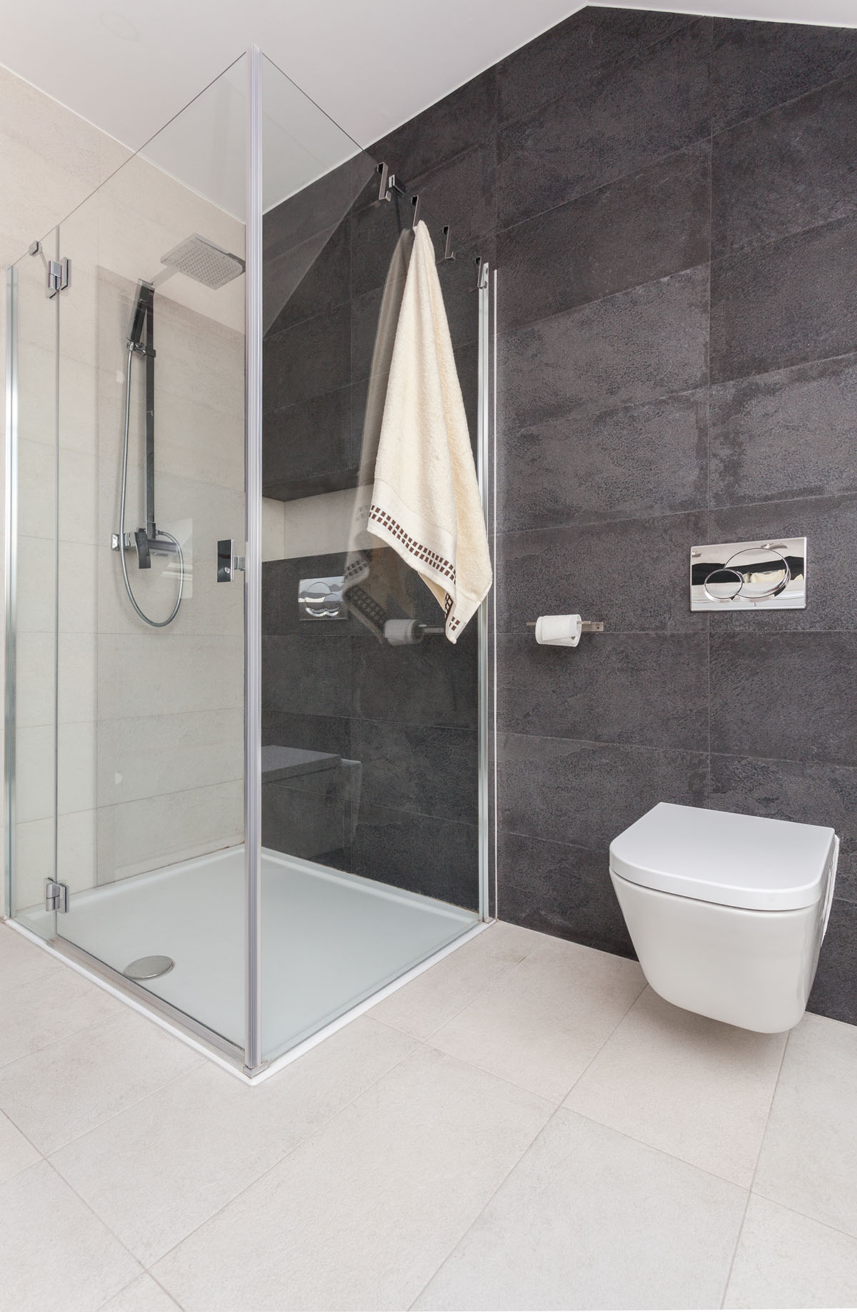- väggduschar - är placerade vid badrummets vägg, men i detta fall räcker det med en. De tar mycket mer utrymme än typiska hörnduschar eftersom de sträcker sig mer in i badrumsutrymmet. På marknaden finns många olika former av dem, inklusive walk-in kabiner.